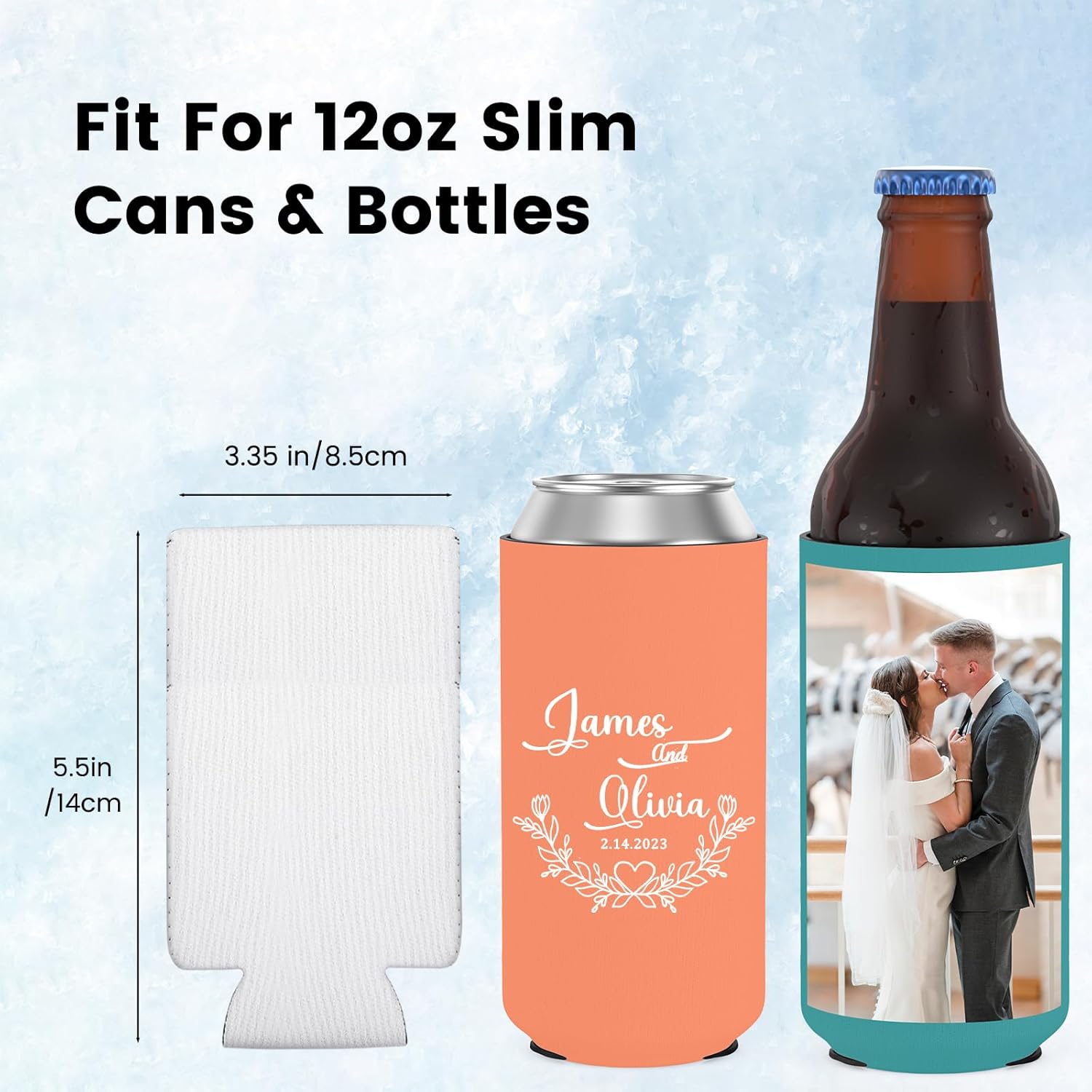 20PCS Custom Slim Can Cooler Sleeves, Soft Insulated Reusable Personalized Cooler for Water Bottle Soda, 12oz Skinny Neoprene Beer Can Coolers for Parties Weddings Events