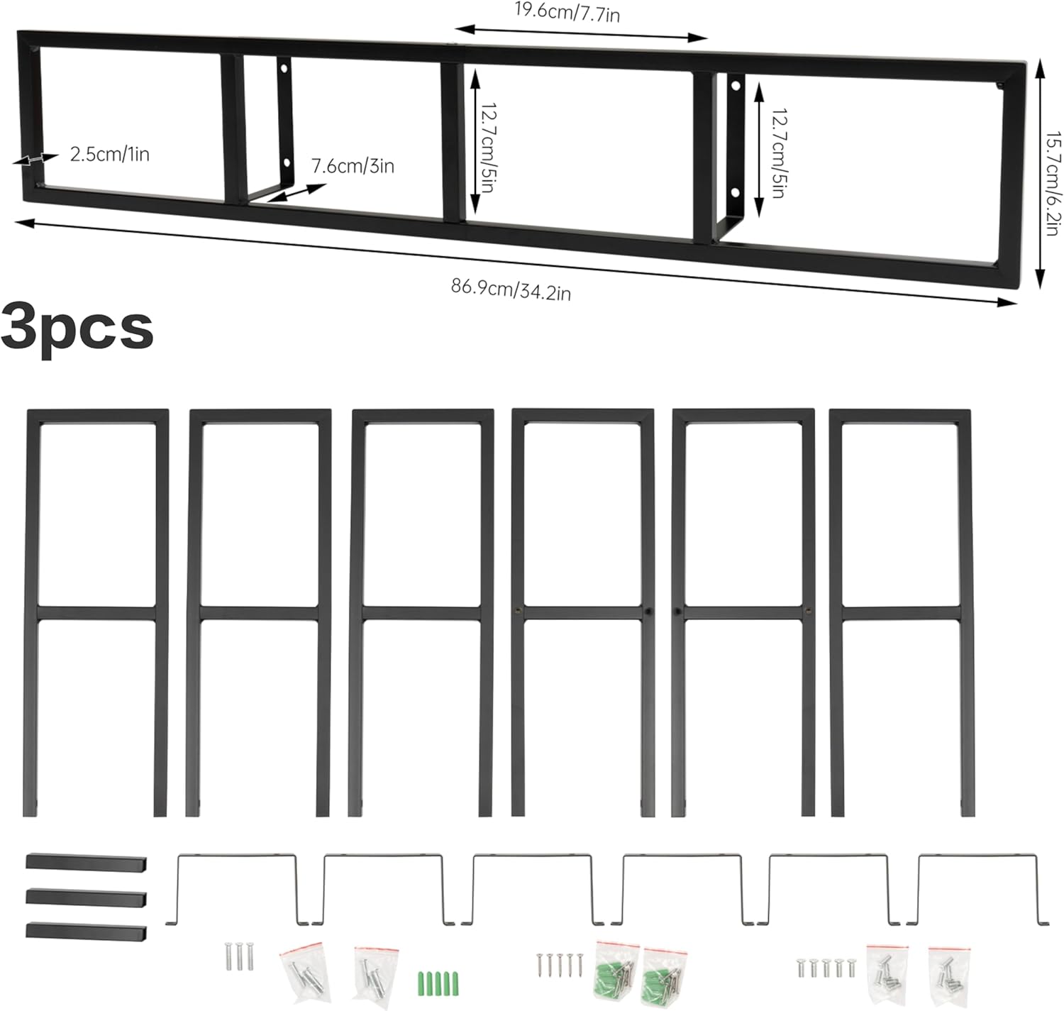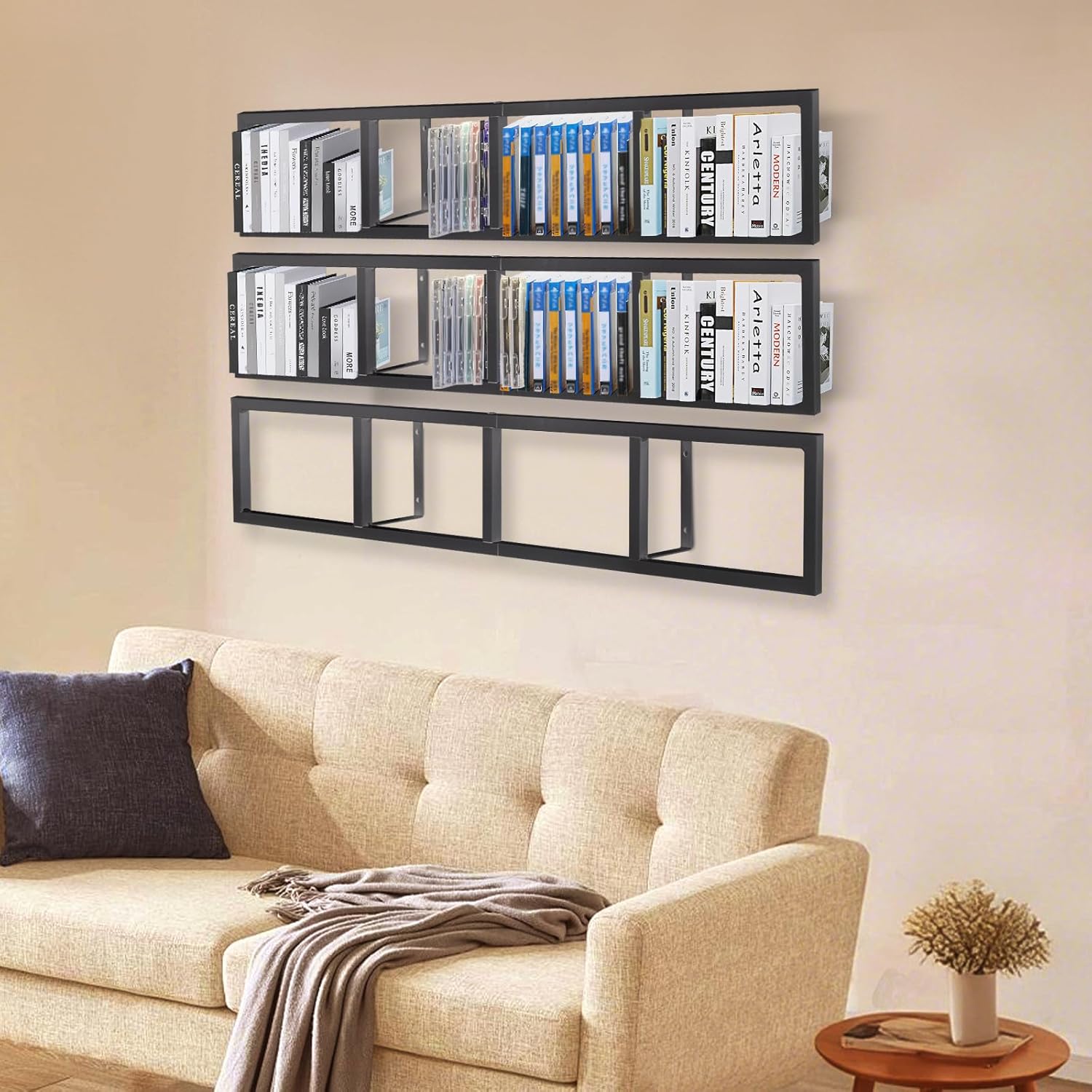 ApplicationThis CD rack can not only store CDs, DVDs and books, but also is a beautiful ornament for house and an ideal gift for friends. You can install it at any place that you like from the study to the bedroom.SpecificationMaterial: IronColor: Black;Installation Way: PunchingProcessing Technology: WeldingMounting Type: Wall MountShelf Type: Floating ShelfShape: RectangularAssembly Required: Yes Number of Pieces: 3Net Weight: 4.8kg/10.58lbsLoad-bearing: 10kg/22.04lbProduct Size: 86.9*15.7*7.6cm/34.2*6.2*3 inchEach Compartment Size(L*W):19.6*12.7cm/7.7*5inchIncluded3* CD RacksAll Accessories for Installation