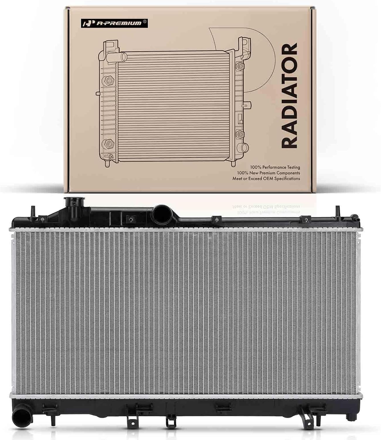 A-premium Radiators are an ideal choice to replace your broken Radiators. All Radiators meet or exceed OEM specifications. Due to high manufacturing standard, it will come with one year quality guarantee. Compatible with Subaru Models: 2008-2014 Impreza H4 2.5L 2014-2014 WRX STI WRX?STI Specifications: Core?Material: Aluminum Tank?Material: Plastic Down?Flow?Or?Cross?Flow?Type: Downflow Core?Height?(in.): 13-3/8 Inch Core?Thickness?(in.): 5/8?Inch Core?Width?(in.): 27-3/16 Inch Inlet?Header?Width?(in.): 1-9/16 Inch Inlet?Header?Length?(in.): 28-3/16 Inch Outlet?Header?Width?(in.): 1-9/16 Inch Outlet?Header?Length?(in.): 28-3/16 Inch Inlet?Diameter?(in.): 1-9/16 Inch Outlet?Diameter?(in.): 1-9/16 Inch Transmission?Oil?Cooler?Included: No Engine?Oil?Cooler?Included: No OEM Number: 13093, CU13093, 45119FG030, 45119SC090, SU3010655 Quantity Sold: One Piece Note: It comes without Transmission Oil Cooler and Engine Oil Cooler