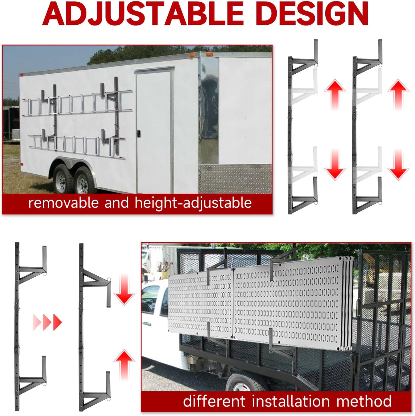| Included Components | 2pcs trailer ladder racks ; 24 sets of screws ; 12 sets of expansion screws, 4pcs ratchet straps ; 2pcs wrenches ; 8pcs covers |