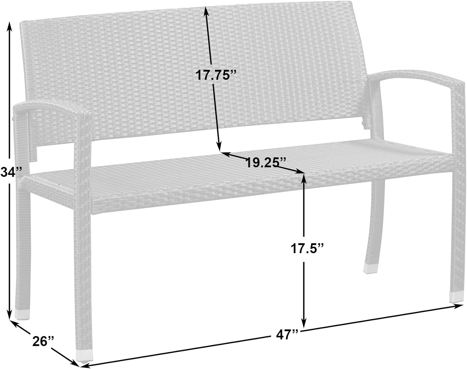 The Miles Patio Bench offers a maintenance-free seating experience in lovely mocha wicker. This lightweight yet sturdy bench is perfect for a relaxing pause in the garden or your backyard patio. The attractive woven design is the perfect year-round accent for any patio, porch, or garden setting.