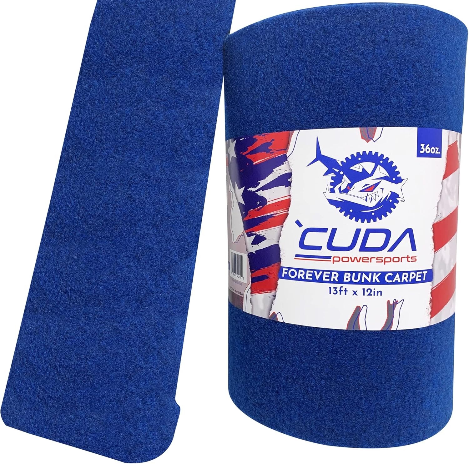 See our product & installation videos. Yes, our 36oz FOREVER Bunk Carpet is more expensive but for good reason. 'Cuda's 36oz FOREVER boat trailer bunk carpet is proud to be "Made in the USA" a culmination of innovative manufacturing techniques, more robust raw materials and higher design standards. The result is an unmatched boat bunk carpet when comparing weight of carpet, durability, and overall performance. This is why ‘Cuda Powersports is comfortable stating our FOREVER bunk carpet product should last for 20+ years. 'Cuda's rugged 36oz FOREVER marine carpet for boat trailers is intended to be the last boat trailer carpet you buy. The Pile Height of FOREVER Bunk Carpet is comparable to our leading PREMIUM marine grade bunk carpet the difference being the FOREVER roll has a thicker backing; while our PREMIUM rolls have a slightly thinner backing and thicker carpet fibers (more cushion). Our proprietary FOREVER boat bunker carpet is engineered to withstand the harsh elements, rough boat launches and retrievals. It is highly recommended FOREVER boat runner carpet be both adhered and stapled to the bunker boards to ensure proper installation. Our FOREVER line of marine bunk carpet is so rigid that wrapping the carpet around a bunk board takes a little extra muscle and carpet adhesive is required to ensure the carpet remains initially adhered. 'Cuda Powersports offers a Bunk Carpet Install Kit specifically for installing our 23oz PREMIUM and 36oz FOREVER marine grade carpet. This kit comes with a Quart of Roberts 6700 carpet adhesive, 336 Galvanized Staples, and a special notched trowel as an adhesive applicator. 'Cuda's marine carpet for boats can be used for numerous tasks/projects, such as: boat lift carpet, jet ski carpet, bunk board carpet, marine carpet for trailer bunks, marine carpet for boat trailers, marine carpet for boats, boat lift bunk carpet, boat runner carpet, bunk trailer carpet. Be sure to register your warranty with Cuda Powersports.