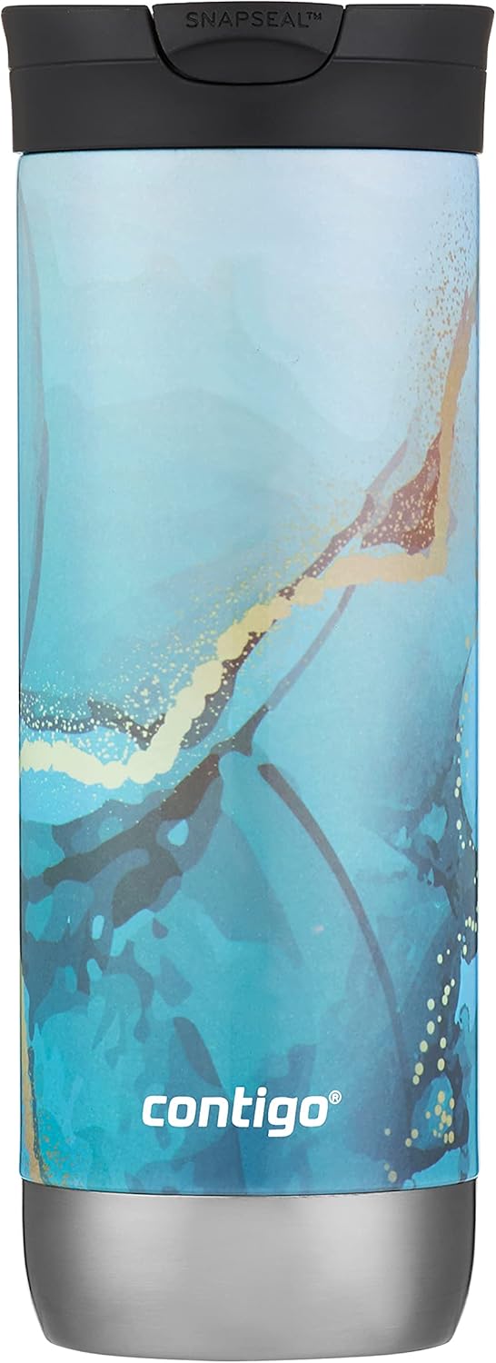 This bundle includes two Contigo vacuum-insulated stainless steel travel mugs - the 16oz Huron mug and the 24oz Byron mug - to meet your hot and cold beverage needs on the go. The Huron mug keeps drinks hot for up to 6 hours or cold for 12 with Thermalock double-wall insulation and a leak-proof lid that allows convenient one-handed drinking. Its contemporary licorice finish and perfect fit for car cup holders and under brewers add stylish portability. Complementing the Huron's functionality, the Byron mug offers additional capacity with its 24oz design, keeping drinks hot for up to 9 hours or cold for 21. Its subtle textured grip ensures secure handling while allowing leak-proof one-handed drinking. The eye-catching Chardonnay hue couples durability with sustainable reuse for daily beverage transport. Together, the Contigo Huron and Byron mugs deliver customizable capacity, unmatched insulation, effortless portability, and contemporary styling to meet your varying drink temperature and style needs on the go.
