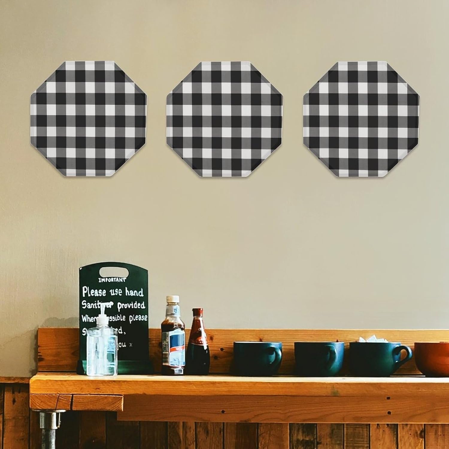 This modern abstract wall decoration brings a luxurious feel to your walls, creating a stylish home décor. It can be easily installed on any blank wall, adding texture and depth to your home.Personalized signs are perfect for kitchens, bathrooms, doors, garages, TV walls, living rooms, and other spaces. They can be hung in living rooms, bedrooms, hallways, offices, meeting rooms, and waiting areas. Use them on manhole covers, partition walls, or any other small, unique sign you desire.Our octagonal iron plate is the perfect gift because each of our octagonal iron Black And White Plaid plates features a unique pattern, suitable for any occasion. The unique pattern adds a distinctive touch.Come and choose the decorative mural that suits you best!