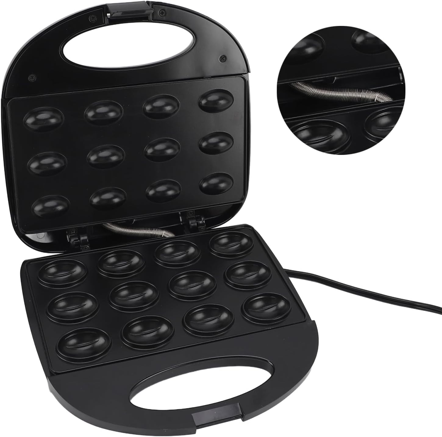 1. DOUBLE SIDED HEATING: With double sided heating function, it allows you to bake more walnut cake in less time and reduce energy consumption. 2. EASY TO : The plate has a nonstick coating that prevents food from sticking to it. You can easily wipe them with a damp cloth and water without leaving marks or scratches. 3. 12 PIECES: This pecan cake maker is designed with a large capacity to make 12 pieces of walnut cake, so you can share it with your family and friends. 4. SAFE COOKING: The safe touch handle provides a firm grip and helps prevent burns, which will go a long way in improving safety. 5. PRACTICAL TOOL: This double sided electric walnut cake maker is useful for making delicious walnut cakes, various toppings and other deserts. The improved design allows for more even baking of the cake and helps prevent filling leaks. Specification: Item Type: Walnut Cookie Maker Material: ABS, Aluminium Alloy Power: 750W Single Time Can Do The Number: 12Pcs Size: Approx. 23x21x22cm / 9.1x8.3x8.7in Gross Weight: 1288g/2.8lb PackageList: 1 x Walnut Cookie Maker Note: All data are measured manually, and there are certain errors in the measurement results.