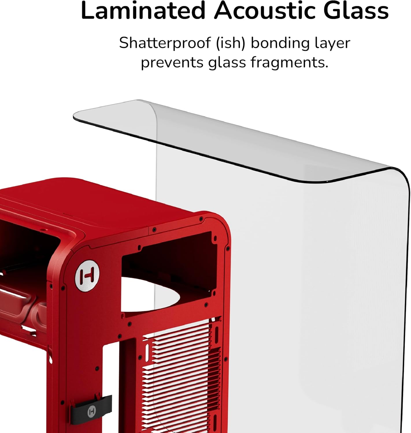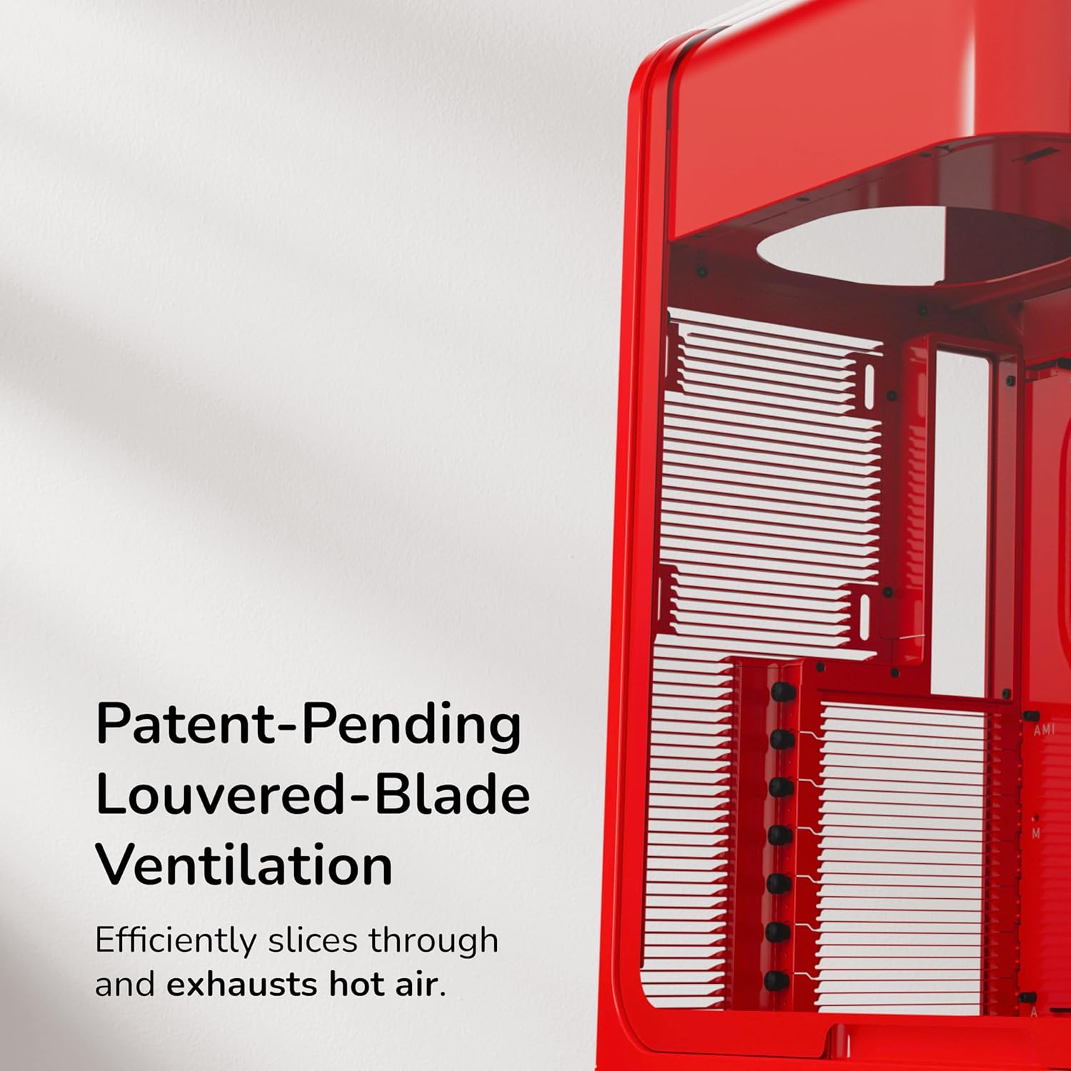 Achieve new modern performance in a HYTE X50 Wild Cherry (Red) PC case, an industry changing computer chassis aimed at better airflow and lower temperatures while still maintaining a trendy aesthetic. Revolutionary cooling and airflow features are finally introduced thanks to the HYTE X50 Wild Cherry (Red) case, creating a low pressure and low resistance air intake, thus increasing airflow. New louvered blade ventilation technology (patent pending) even slices through hot air using angled metal instead of punchouts. Finally, your gaming PC and the graphics card stays cooler than ever now that the power supply shroud is placed at the top, ensuring up to 360mm of fresh intake air hits straight to the GPU. Keeping the trendy yet unique style that HYTE is known for, the X50 Wild Cherry (Red) PC case uses a 4mm thick laminated acoustic glass with sound dampening properties and a shatter-proof layer. This disciplined design blends premium materials like curved steel and tempered glass, remaining playful yet intentional. By placing the PSU shroud at the top, cable management also becomes easier than ever by hanging down and flowing with gravity. Featuring plenty of color options for all sorts of desktop styles, experience play with the new HYTE X50 PC case.
