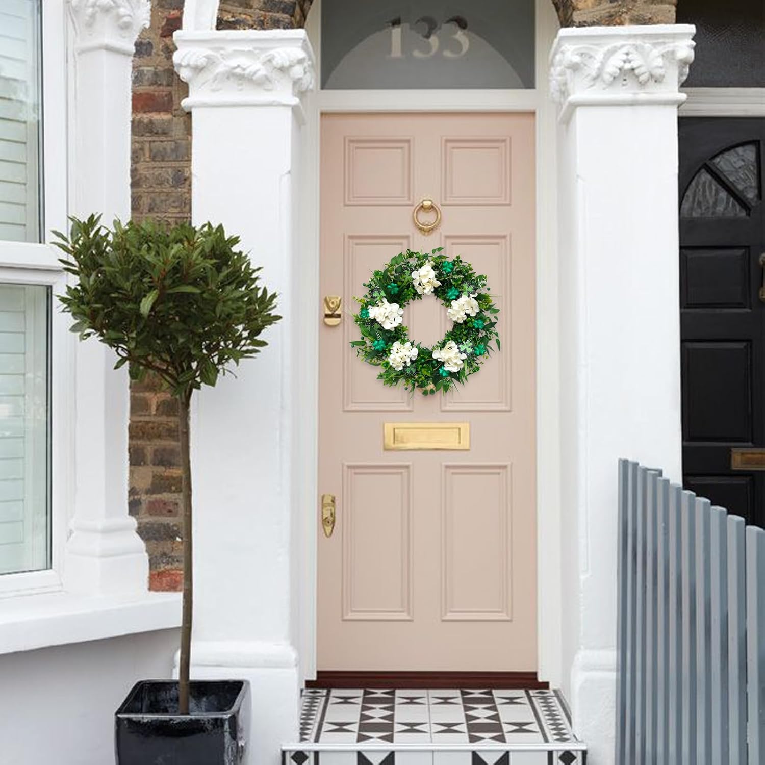 With a fully expanded outer diameter of approximately 22 inches, this wreath is ideally sized to make a lasting impression without taking up too much space. Upon receiving the wreath, please adjust it slightly by stretching out all the ribbons to showcase its natural beauty. Tailored for most doors and decorative scenes, it's perfect not only for adorning your front door but also for windows, staircases, mantelpieces, dining tables, and wall spaces.On this vibrant and hopeful St. Patrick's Day, let our front door decoration wreath add a rich Irish flavor to your home. The lively green color, filled with festive atmosphere, features the freshest plant and shamrock elements meticulously woven into a ring. It not only symbolizes the natural beauty of Ireland but also signifies good luck and blessings arriving at your doorstep. During St. Patrick's Day celebrations, hanging St. Patrick's Day decorations on your front door creates a warm and joyful atmosphere.Please use the wreath indoors or in a sheltered outdoor area to avoid prolonged exposure to harsh environments.Manual measurements may result in slight size discrepancies.Due to differences in screen displays, colors may vary slightly.