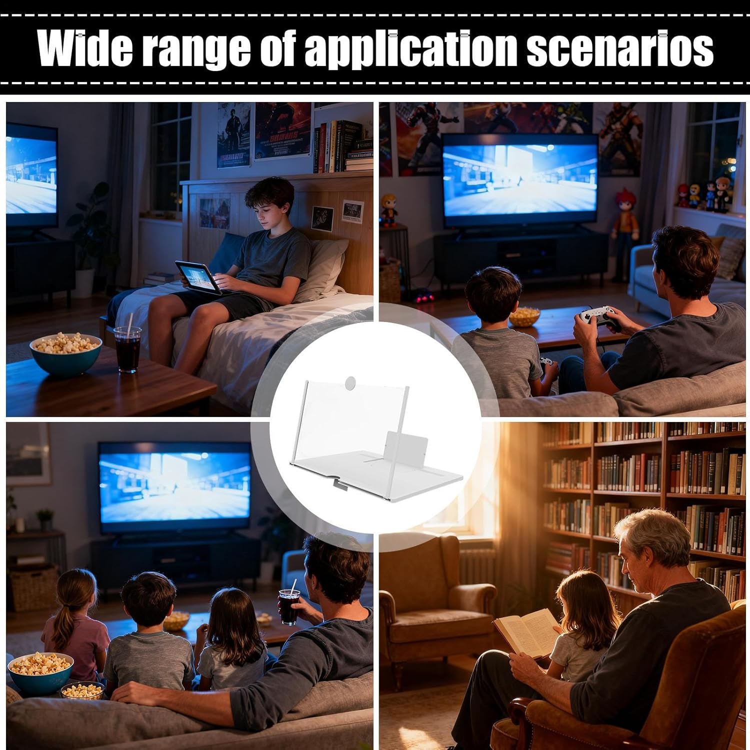 Product description Mobile Phone Screen Magnifier - HD Wide Portable Foldable Phone Stand | Smartphones Holder Movies Expander,for Movies Videos Games Home TravelThe Cellphone Stand Magnifier Projector Screen is designed to elevate your viewing experience with its HD magnification capabilities. This foldable phone stand functions as a movie amplifier enlarger, providing a wide screen for an immersive display. Ideal for watching movies, videos, or playing games, it enhances visual enjoyment at home or during travel. Its portable and space-saving design ensures convenience without compromising functionality. Whether you are relaxing indoors or in transit, this cellphone stand magnifier projector screen delivers an engaging experience for all your entertainment needs.SpecificationMaterial: ABS, lensBest viewing distance: 1.5-2 metersMagnification: 3-4 timesProduct size: 37.2*24.7cm/14.65*9.72inchWeight: 750gListMobile phone screen amplifier*1Instruction manual*1Note:1. Due to lighting effects and display angles, there may be color differences in the product.2. Due to manual measurement, there may be errors in product size, please understand. Manufacturer Contact Information Refer to description