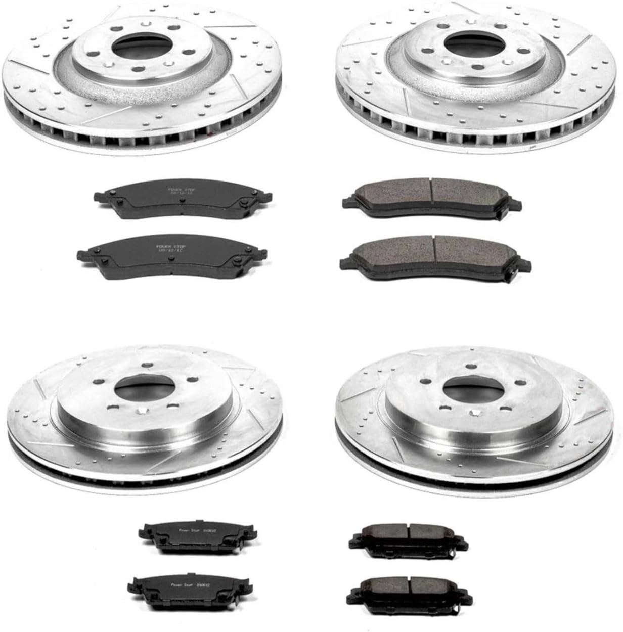 Product: PowerStop Z23 Evolution Sport Brake Pads and Drilled & Slotted Rotor KitWhat’s in the Box: This premium Z23 brake kit upgrade includes Z23 Carbon-Fiber Ceramic Brake Pads, Drilled & Slotted Rotors, Rubberized Shims, and Installation HardwareEngineered For:Long Lasting Performance Seekers - Significant performance improvements above OE brakes with a 3 year / 36,000 mile warranty to back it upThe Enthusiast - Your do it all option to keep you braking quiet and dust free without sacrificing stopping power and temperature control in high demand situationsBolt on ready - This kit includes premium stainless steel hardware for an easy install. No modifications needed to your vehicleComponent Breakdown:The Pads (Z23 Formula) - The included Z23 pads use a low-dust ceramic formula reinforced with carbon fibers. This provides severe-duty stopping power without sacrificing everyday drivability or creating noiseThe Rotors - Zinc plated to protect against rust. The precision drilled holes and rounded slots maximize cooling and wipe away gas/debris—critical for keeping temperatures down during all operating conditionsThe Hardware - High-quality stainless steel installation hardware makes an easy install even easierInstallation: A true bolt-on upgrade. No modifications required. Includes all necessary stainless-steel hardware for a hassle-free installThis Item Fits:Front and Rear: 2006-07 Cadillac CTS Base; with 323 mm Front Rotor; with 320 mm Rear Brake Rotor Front and Rear: 2005-08 Cadillac STS Performance Brakes; JE5