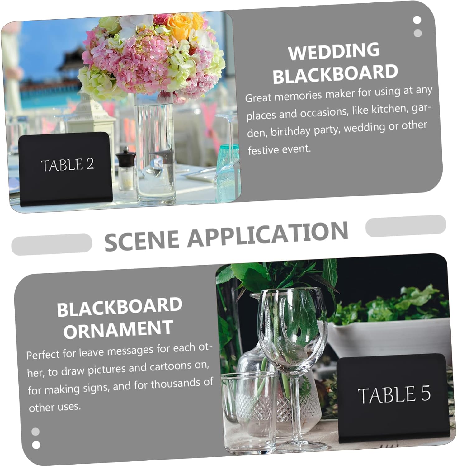 Package List 36 x Boards Features -Color: Black Message Board - Size: 10.00X7.00X3.50cm/3.93X2.75X1.38in Memo Blackboard -Material: Acrylic Blackboard Ornament -It can be used in the kitchen, garden, birthday party, wedding or other festive occasions Office Writing Board. - for leaving messages for each other, drawing pictures and cartoons, for making signs, and thousands of other uses Small Blackboard. -Any chalk or even liquid chalk can write on it Blackboard Decoration. -Suitable for food stalls, food labels, coffee tables, restaurant signs, etc Home Decoration. -Small and versatile, double-sided writable Wedding Writing Board.Goods DescriptionHome Decoration Made of , lightweight and for long term use.Creative Small Chalkboards Are you looking for a blackboard? This product will be the choice for you.Acrylic Chalkboard Portable drawing board with compact size, and