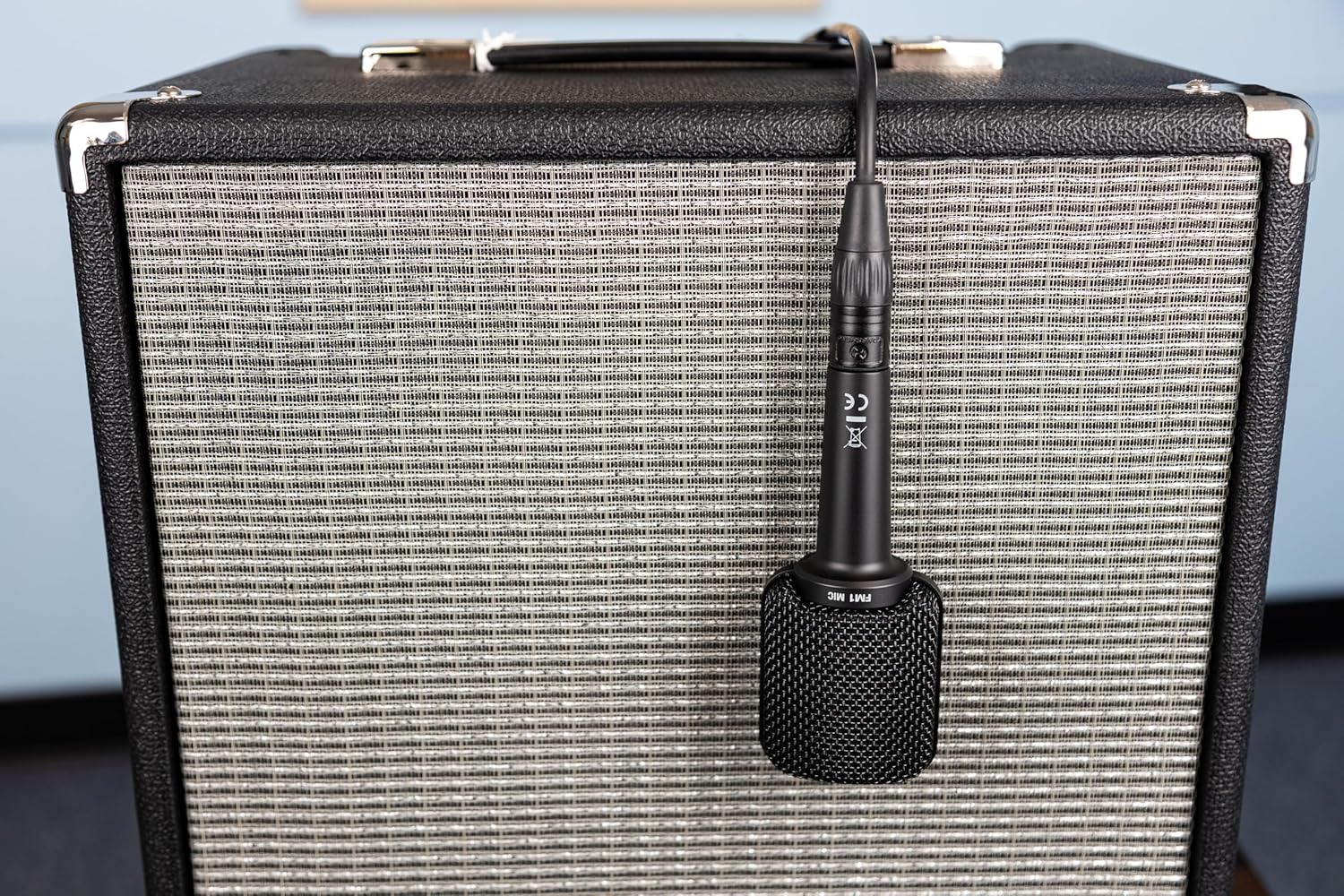 The FM1 Dynamic Flat Microphone is a dynamic instrument microphone designed for recording guitar cabinets and drums. It's an ideal solution for when you need to get up close to a sound source without losing clarity. The microphone’s flattened profile and supercardioid pickup pattern ensure clear recording, while the dynamic element can withstand high volumes without distorting, allowing you to record loud sources cleanly.