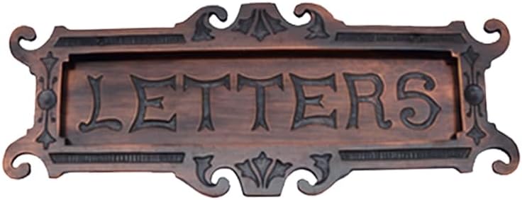 Add a touch of vintage elegance to your home with this exquisitely crafted decorative brass letter plate. The Cherethims letter plate features an ornate Victorian-style design with intricate scrollwork and leaf patterns, finished in a sophisticated antique copper tone. Measuring 10.11 inches wide and 3.3 inches tall with a 0.12 inch thickness, this sturdy plate makes a striking addition to any door or mailbox. The detailed border surrounding the 'LETTERS' text creates a classic, timeless appeal that enhances both traditional and contemporary decor styles. The plate comes with pre-drilled mounting holes for easy installation and includes both a decorative top piece and a functional letter slot plate. Perfect for front doors, home offices, or any space where you want to combine practical functionality with architectural charm. Each plate is carefully manufactured to ensure durability and long-lasting beauty, making it an excellent choice for those seeking to add character to their home's hardware elements.
