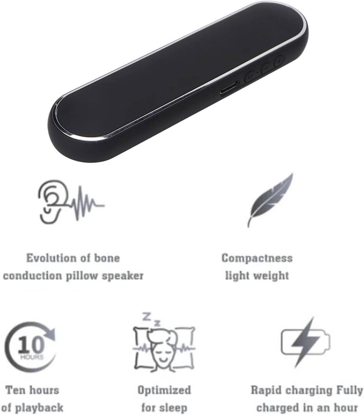 Spec:Item Type: Under Pillow SpeakerMaterial: ABSBattery: Polymer Lithium Ion Battery (Built In) Capacity: 400mAhBluetooth: V5.0Endurance: 10 HoursSound Channel: StereoSleep Mode Setting:Three Clicks Of The M Key Under The Power On State, Enter The Sleep Adjustment Time Block (1 Hour, 2 Hours, Two Gears,) Each Click Volume Plus Once To Add 1 Hour, Each Click Volume Decrease 1 Hour, 2 Hours Capped, Sleep Time To Get to The Device Automatically Shut DownLocal Playback Mode SettingsInsert The Memory Card, Double Click The M Button To Enter The Local Playback, Bluetooth Mode, The Maximum Support Capacity Of 8GBVolume Up: Click Volume +, Long Press The Next SongVolume Down: Click Volume -, Long Press The Previous SongHow to Use:Just take out the productpacking list:1 xUnder Pillow Speaker1 x USB Cable