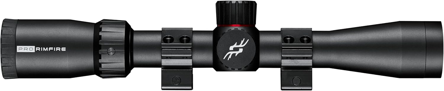 The all-new Simmons Pro Rimfire Riflescopes offer an all-glass optical system providing crisp images in low lighting conditions with fully coated lenses and IPX7 waterproof, fog-proof and shockproof construction giving you piece of mind in the outdoors. Built with an aggressive and rugged new design including textured magnification power change ring and capped finger adjustable windage and elevation turrets. The Pro Rimfire riflescopes feature a one-inch one-piece aluminum main tube with a 50-yard rimfire-specific parallax and a Simmons .22 Drop Zone reticle. All Simmons riflescopes come ready to go out of the box with included lens covers and one-inch aluminum weaver-style rings.